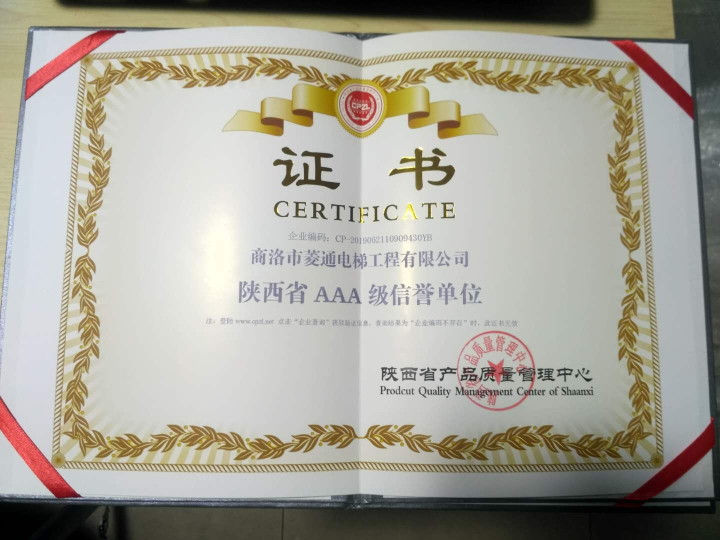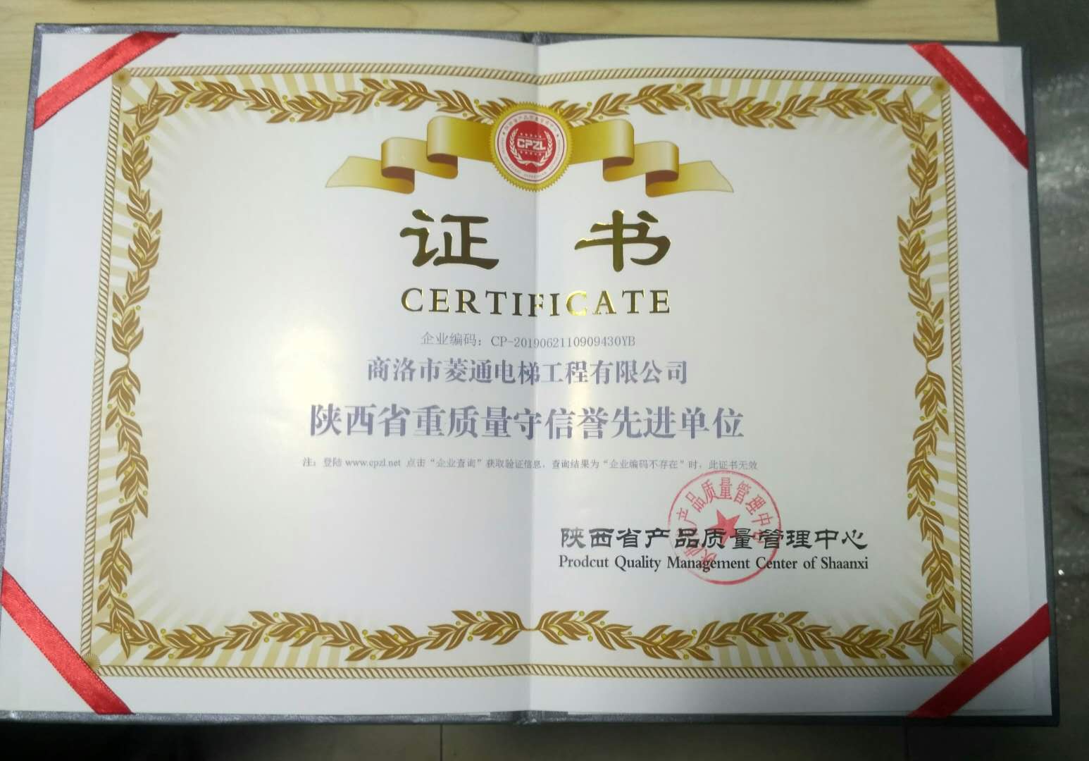 商洛菱通電梯工程有限公司,2019年很榮幸被陜西省產(chǎn)品質(zhì)量管理中心評(píng)為:陜西省AAA級(jí)信譽(yù)單位和陜西省重質(zhì)量守信譽(yù)先進(jìn)單位;并頒發(fā)獎(jiǎng)牌及榮譽(yù)證書。這個(gè)榮譽(yù)不但得益于各單位的支持與默契合作,更得益于我公司優(yōu)良的團(tuán)隊(duì)氛圍和集體上下一致積極認(rèn)真的工作態(tài)度。更得益于領(lǐng)導(dǎo)重承諾守信譽(yù):提倡安全第一,質(zhì)量第一,信譽(yù)第一的原則。能被評(píng)為3A級(jí)信譽(yù)單位和信譽(yù)先進(jìn)單位,既是對(duì)公司工作的肯定,也是對(duì)今后工作做得更好的一種鼓勵(lì),我公司定會(huì)盡職盡責(zé)做得更好。