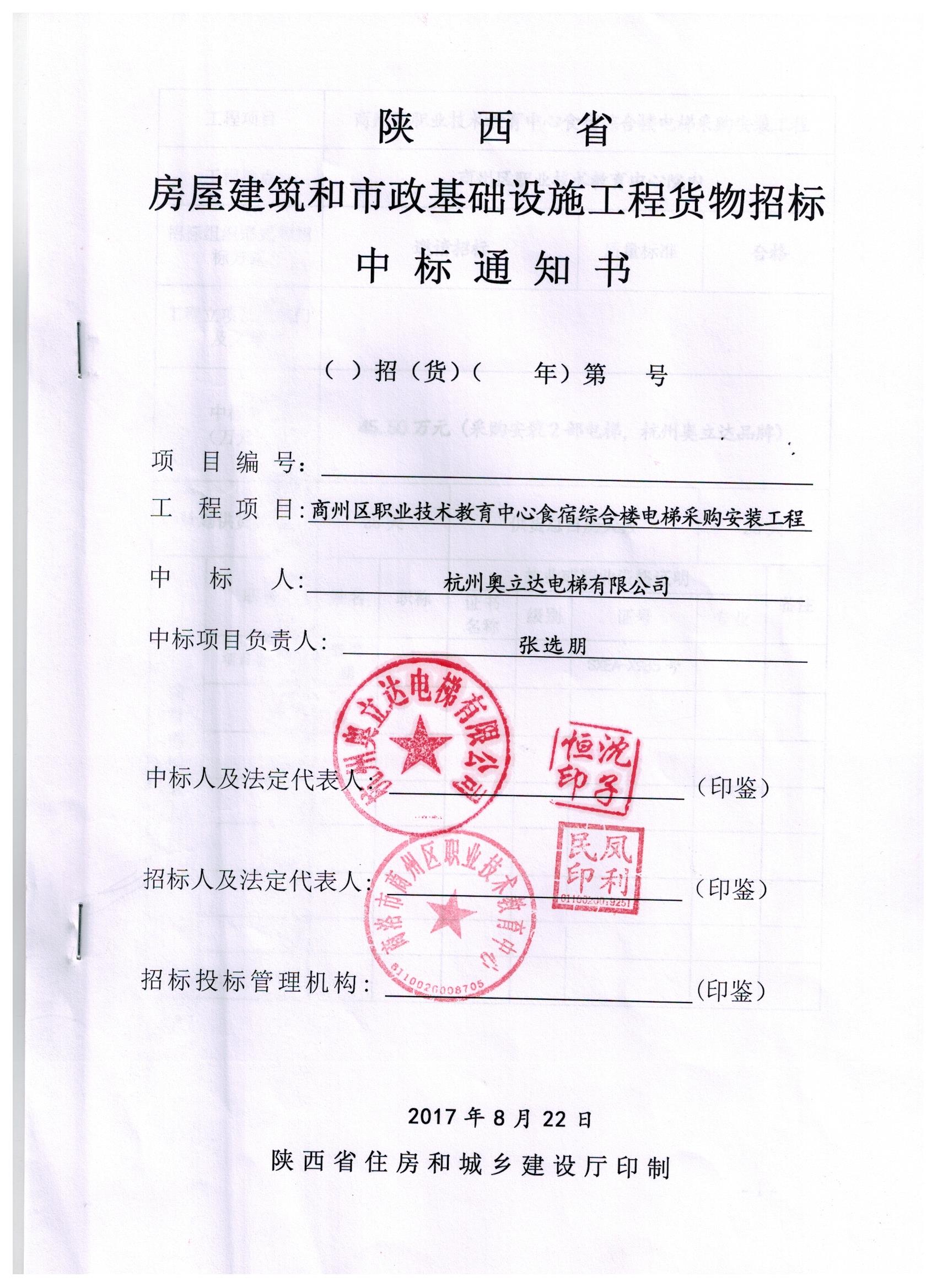 商洛市商州區(qū)職業(yè)技術(shù)教育中心電梯招標(biāo)結(jié)果